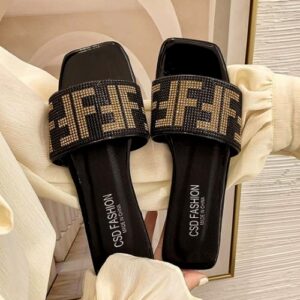 Square Toe Rhinestone Letter Slipper