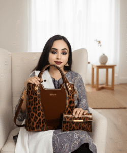 Women’s New leopard print splicing bright leather handbag brown / code=1030br
